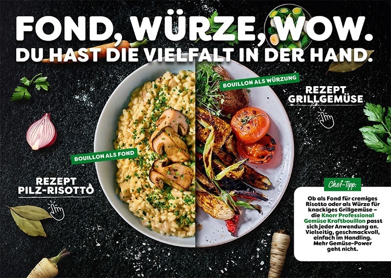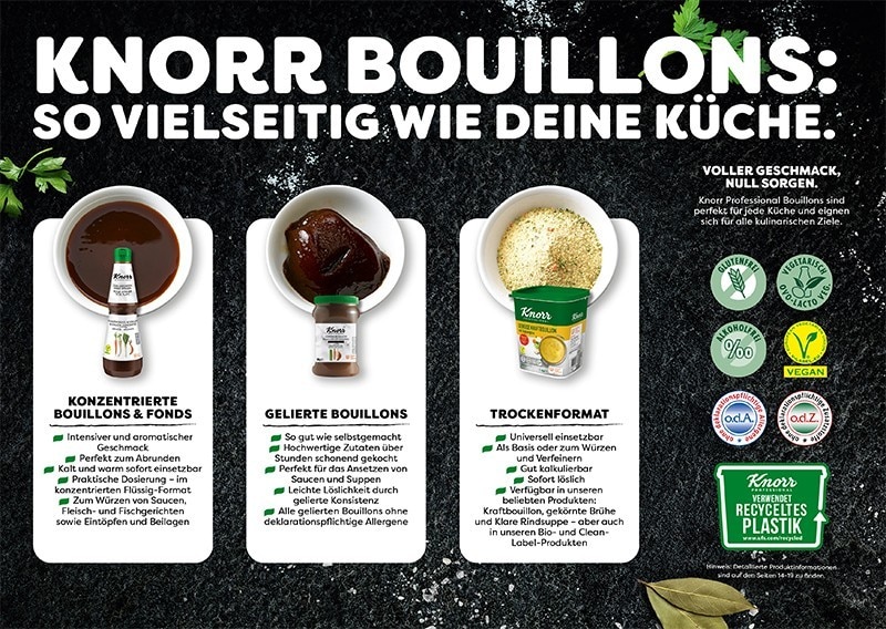 *Knorr Professional ist Marktführer im professionellen Produktbereich Gemüse Bouillon trocken. Quelle: Geo-Marketing GmbH, Großverbraucherpanel, Marktanteil, 2023